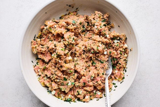 - Don’t overmix. Use your hands and mix just until everything is combined. Overmixing leads to tough meatballs.