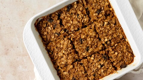 Easy baked oatmeal is a breakfast favorite and a healthy way to start any day! Make in advance and reheat all week!