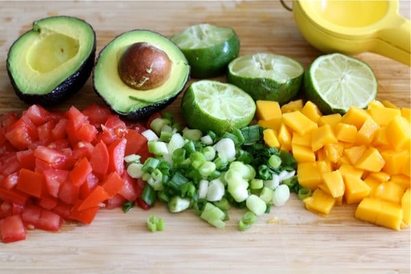 I added all of my favorite flavors to this salad: mango, avocado, tomatoes, green onions, and cilantro.