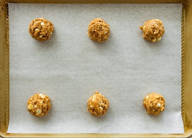 - Place the dough balls on the prepared baking sheet, about 2-inches apart.