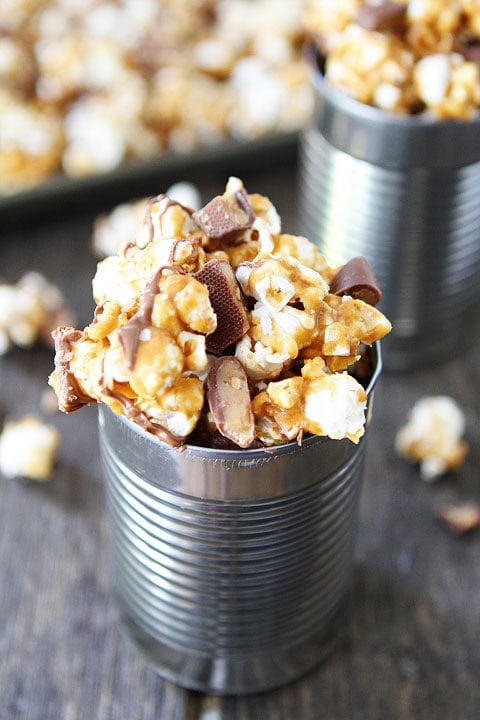 The pan never lasts long at our house. We all love this sweet popcorn and eat it by the handfuls! If we don’t eat it all, I like to share with friends! This popcorn makes a great gift during the holidays so make sure you bookmark this recipe!