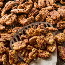 I love these candied pecans. I put them on my roasted beet and goat cheese salad and snack on them too. You just can’t stop eating them.
