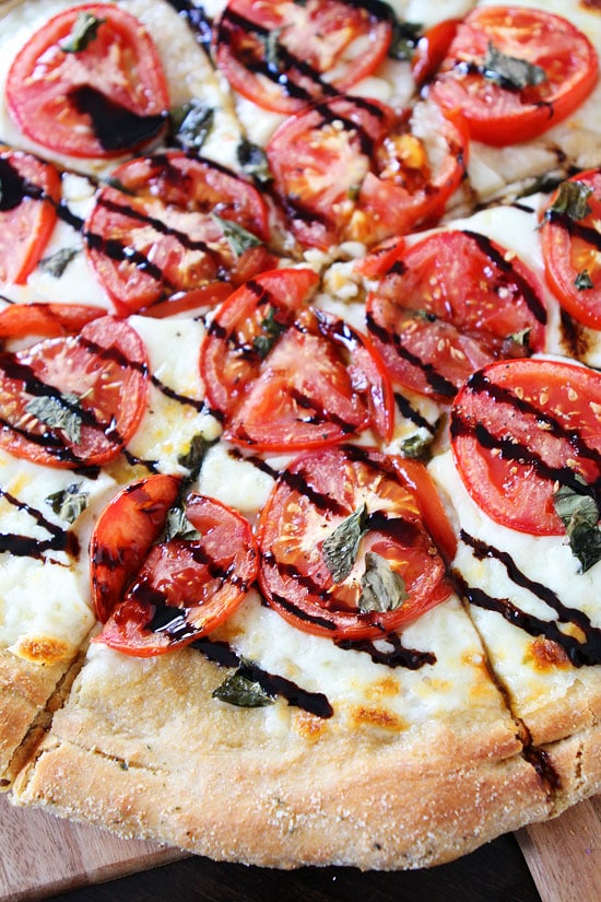 Another beautiful pizza recipe! I love incorporating seasonal ingredients in our dinners and will have to try this… The balsamic glaze looks like the perfect topping for this Caprese pizza.