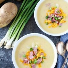Make sure you have some leftover holiday ham so you can make this Cheesy Ham and Potato Soup. And if you don’t have any leftovers, you can always buy ham to make this soup. It is worth it! This soup is creamy, cheesy, comforting, and SO delicious!