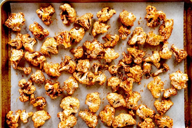 - Place the cauliflower on the prepare baking sheet in an even layer. Roast for 25 to 30 minutes or until cauliflower is tender. Remove from the oven.