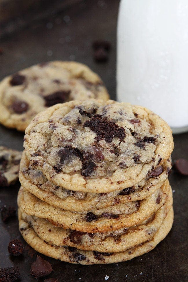 What do you do when you are craving chocolate chip cookies AND brownies? You make Chocolate Chip Brownie Cookies! That’s right, I put brownie chunks inside chocolate chip cookies. You might be thinking that sounds a little extreme and you are right…EXTREMELY delicious! These are my new favorite cookies! I know, I have a lot of favorite cookies, but these are at the TOP of my list.