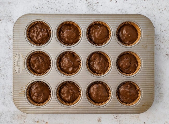 - Fill evenly. Use a cookie scoop to divide the batter evenly among muffin cups.