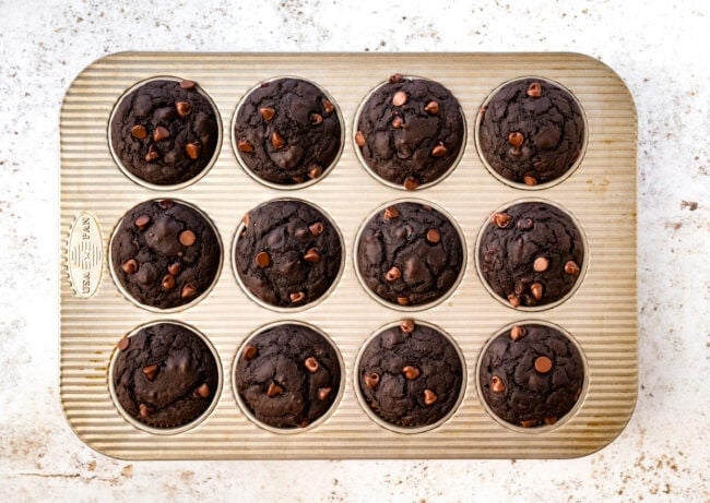 Soft, tender, and decadently chocolatey, these muffins get their richness from cocoa powder and chocolate chips, while Greek yogurt, applesauce, and a touch of maple syrup keep them perfectly moist.