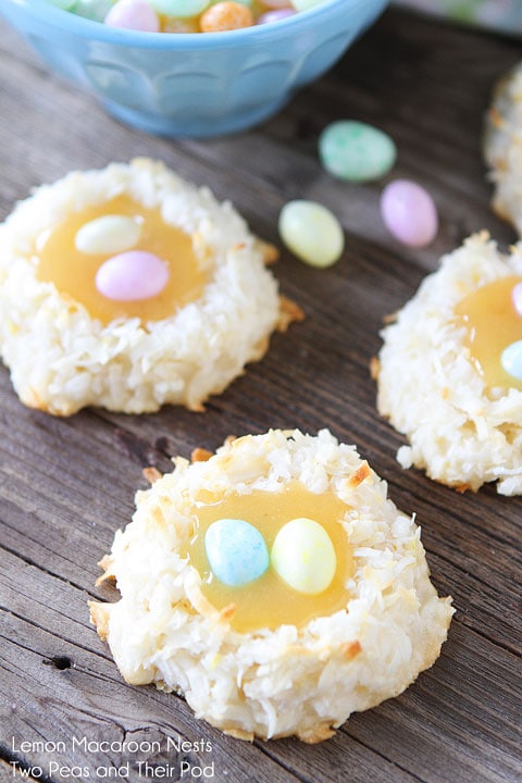 Ahhh these are adorable!!! I LOVE coconut macaroons – I used to eat way too many of these 🙂 I love the nest idea – it’s so darling!