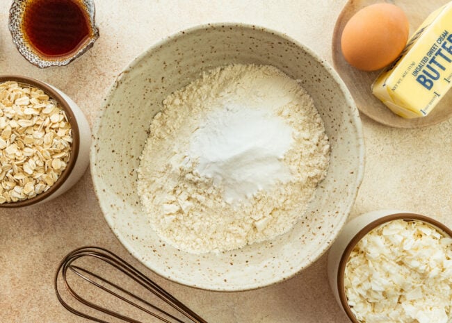 - Flaked sweetened coconut: Adds moisture, chew, and coconut flavor; lightly toast for extra flavor if desired. I like to use sweetened coconut, but unsweetened works well too!