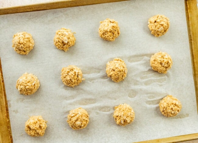 - Scoop tablespoon-sized balls of dough onto the prepared baking sheets, spacing about 2 inches apart.