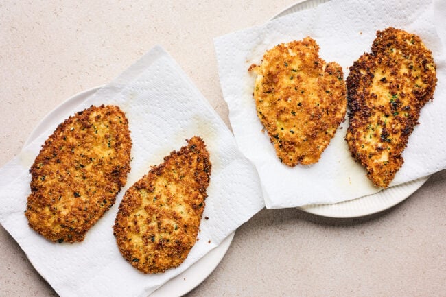 Chicken cutlets are one of my forever favorites for busy weeknights, but this version is truly something special. The chicken fries up perfectly crispy and golden on the outside while staying juicy and tender inside, thanks to pounding the breasts thin and using a flavorful Parmesan-panko coating. It’s the kind of crunch you can hear when you cut into it.