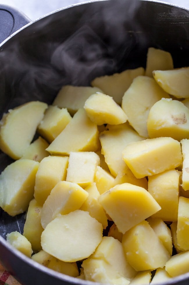 - Drain the potatoes, shaking to make sure all of the water is removed.