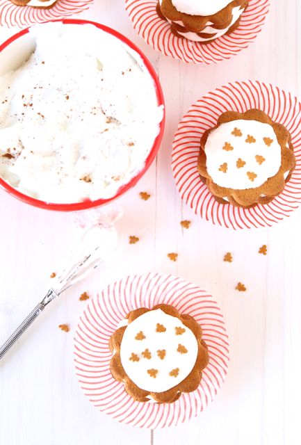 I sprinkled the Icebox Cupcakes with gingerbread man sprinkles right before serving. Aren’t they so cute? I served them in festive cupcake liners from Bake It Pretty to bring out the holiday cheer. These no-bake Ginger Icebox Cupcakes are easy to assemble and are perfect for any holiday party! Kids and adults will love these fun and tasty cupcakes!