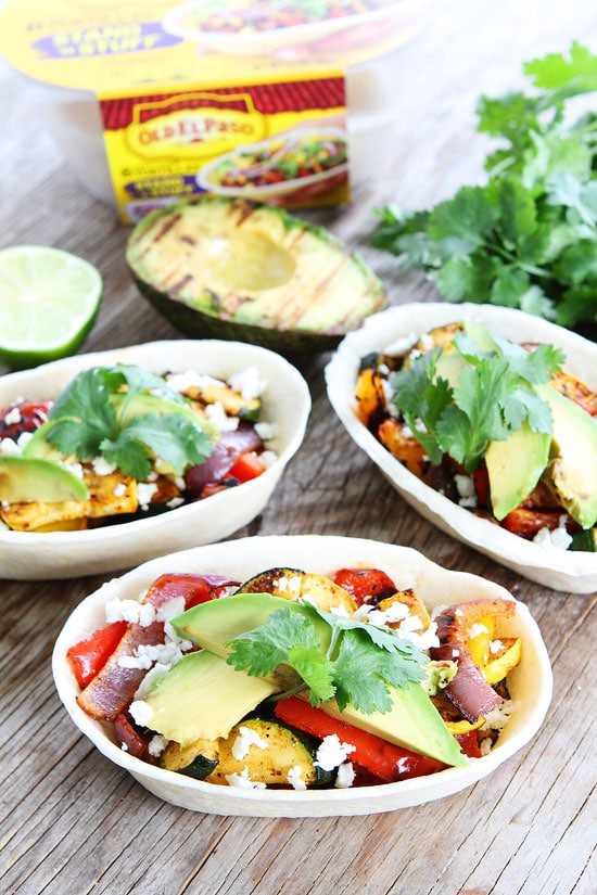 Stand and stuff tacos are such a great idea. I love all of these grilled veggies. 🙂