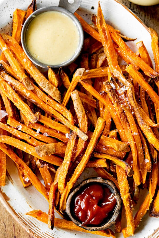 Nobody wants a soggy sweet potato fry, am I right? You want CRISPY fries! I promise you can achieve crispy sweet potato fries without frying them. Here are all of my tips!