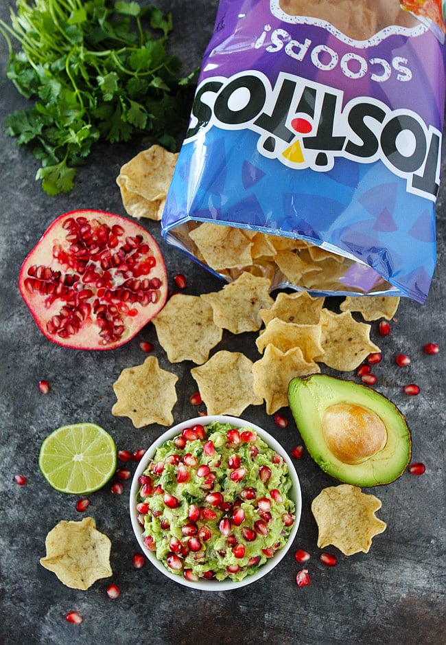 Your guests will love dipping into this festive guacamole. We like to use Tostitos Scoops Tortilla Chips for this recipe because you can really get at that guacamole!