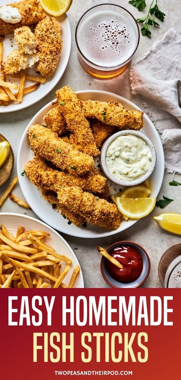 These homemade fish sticks are healthy, easy to make, and taste much better than store bought! Serve with a simple tartar sauce, kids and adults love them!
