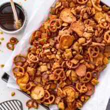 I promise, once you try it, you’ll be making this Hot Honey Chex Mix again and again. It’s simple enough for a weeknight snack but impressive enough to serve at your next party. Plus, it’s customizable…add more spice, swap in your favorite mix-ins, or go nut-free.