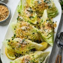 There’s something so fun about serving it right on a platter. The wedges look beautiful, the toasted breadcrumbs add a satisfying crunch, and the fresh herbs and Parmesan make every bite pop with flavor. It’s a salad that feels special, but it’s actually super simple to put together, which I love.