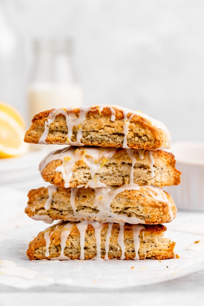 Lemon poppy seed is a classic combination (love my lemon poppy seed cookies and waffles) and the combo works SO well in these scones. I love making these scones for bridal showers, baby showers, or any special breakfast or brunch. They are just so lovely.