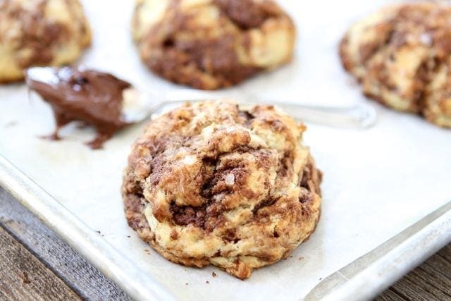 The biscuits are buttery and soft with a sweet swirl of Nutella. Chocolate, hazelnut, with hint of sea salt-divine! These Nutella Drop Biscuits would be a great addition to any brunch table. They are also great as an afternoon snack or dessert. You really can’t go wrong with Nutella Biscuits any time of the day.