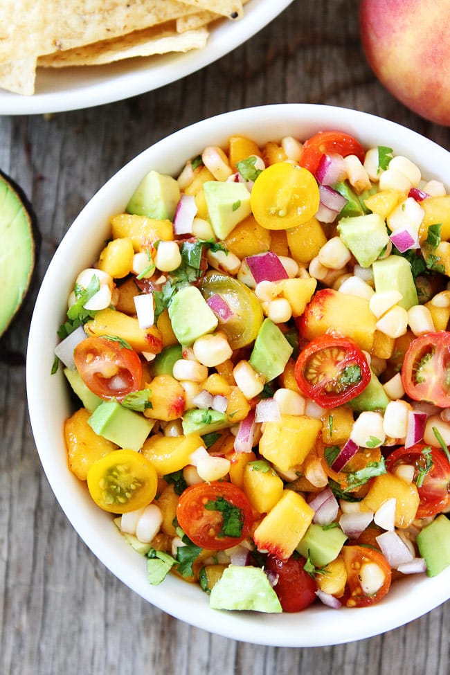 We had an abundance of peaches, tomatoes, and sweet corn in our kitchen so I decided to make a big bowl of salsa. I added avocado too because avocado is always a good idea.