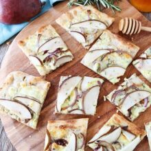 This Pear and Blue Cheese Flatbread recipe is perfect for entertaining or when you aren’t in the mood to cook. You can have this gourmet flatbread on your table in 20 minutes! It will impress your guests and your belly! It is a favorite at our house!
