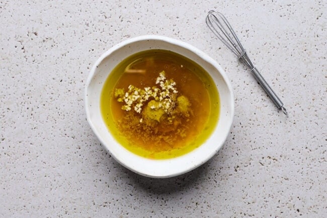 - Make the dressing. In a small bowl or jar, whisk together the olive oil, lemon zest, lemon juice, red wine vinegar, Dijon mustard, honey, garlic, salt, and pepper until well combined.