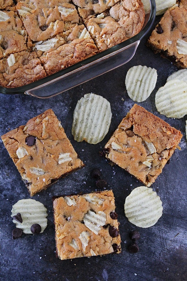 Yes, I put potato chips in blondies. You have to trust me on this one because the salty chips with the sweet blondies are a game changer.