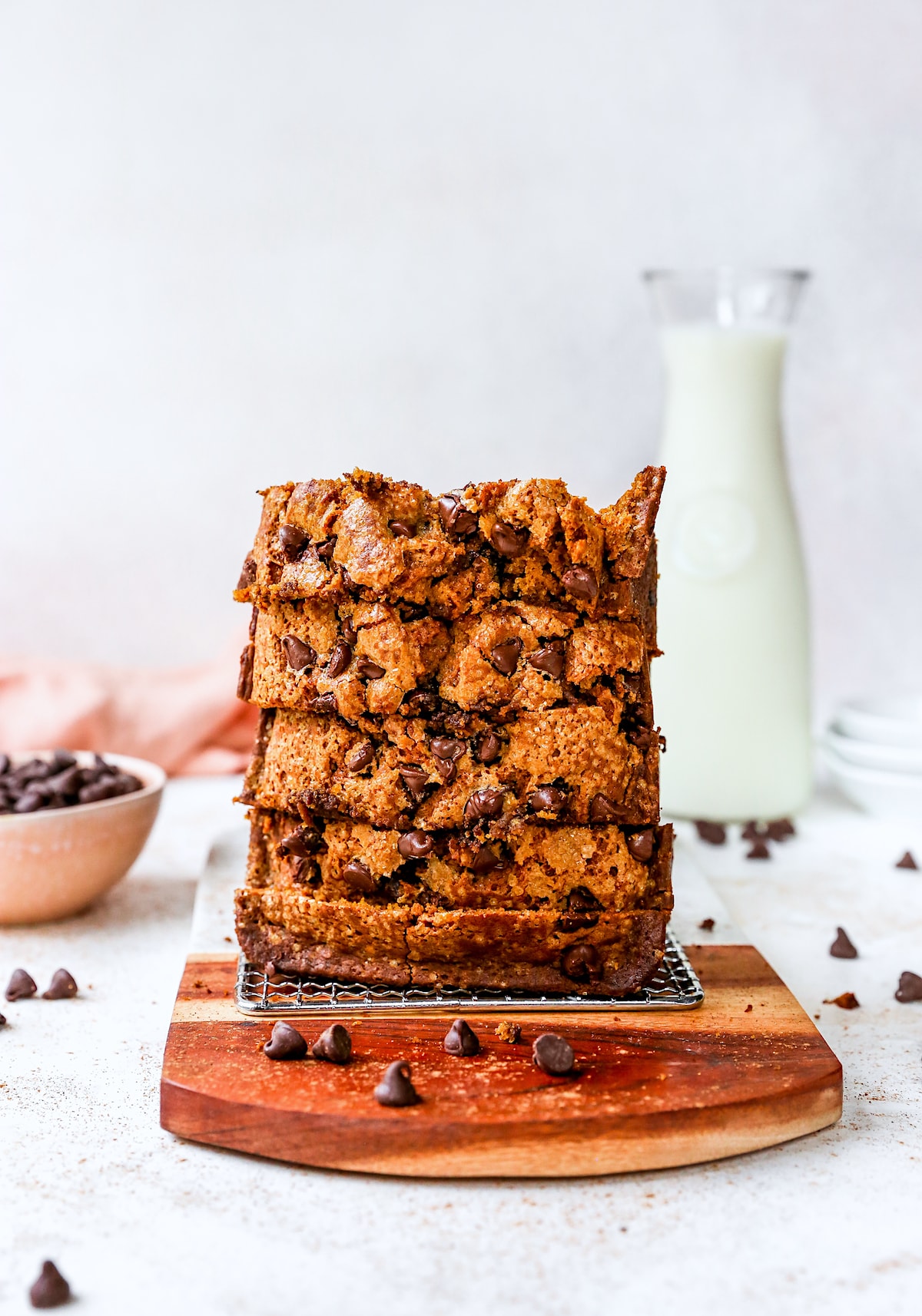 I came to this recipe in 2023 after it was updated, and it was a huge success. I don’t like pumpkin pie and am not a huge pumpkin person, but I saw this recipe on Instagram and my pregnancy brain just got attached to it. Fortunately, I love it! I think it’s a great balance of spices, it’s nice and moist, and I of course increased the chocolate chip ratio a bit. I wasn’t sure I really needed 2 loaves… but made the recipe as instructed anyway… and I have already gone through one loaf (with the help of my parents) and started in on my frozen slice stash today.