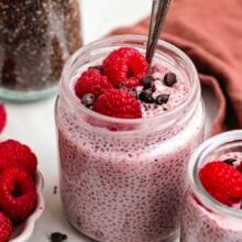 Store raspberry chia pudding in an airtight container or jar in the refrigerator for up to 5 days. This makes it perfect for meal prep. Add toppings right before serving for the best texture and flavor.