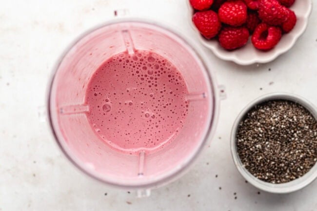 Blending the raspberries with milk gives it ultimate berry flavor and a beautiful pink color that makes it almost too pretty to eat. You can use fresh or frozen berries, which means it’s just as delicious year-round.
