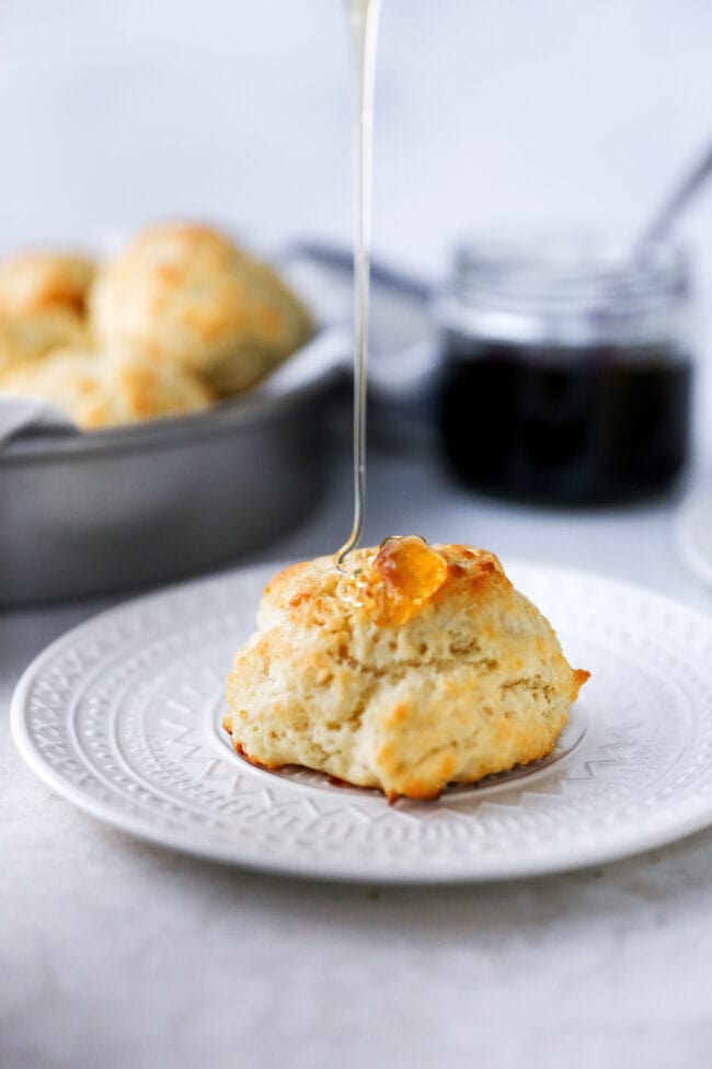 - Transfer biscuits to wire rack and let cool for 5 minutes. Serve with butter, jam, and/or honey.