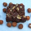 To be honest, I really wasn’t sure what I was doing when I started this recipe. I was just playing around and hoping for a good outcome. I added in hazelnut extract and Nutella to a pretty basic recipe. I also baked them in a round 9 inch cake pan. I was going for brownie wedges, but after tasting them I decided brownie mini squares would be more appropriate. They are REALLY rich, in a good way of course!