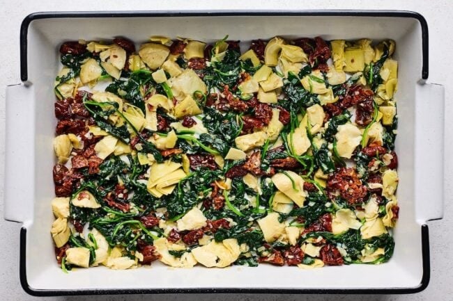 - Artichoke hearts: Be sure they’re well drained so the casserole doesn’t get watery.