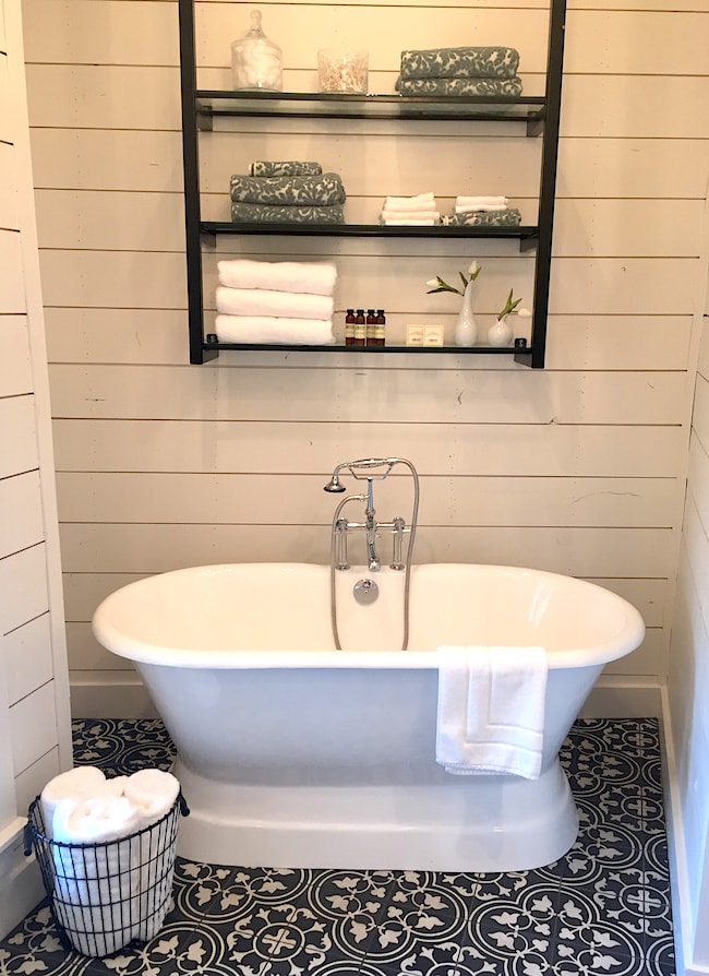 Look at that dreamy tub and black and white cement tile. I loved everything about this bathroom! We are doing black and white cement tile in our guest bathroom and I can’t wait:)