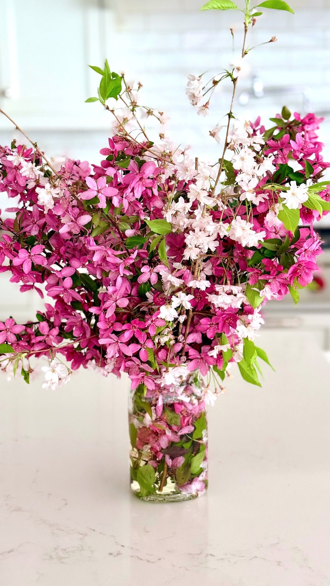 - I cut some branches from our crab apple tree and weeping cherry tree to brighten up our kitchen. I love bringing in blooms from my own yard.